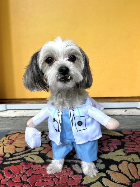 Dr. Pepper has been a part of the practice since 2022 and earned her white coat in 2024. As much as she likes pets, snacks, and long walks, she most enjoys sitting in patient’s laps and providing comfort during their appointments.